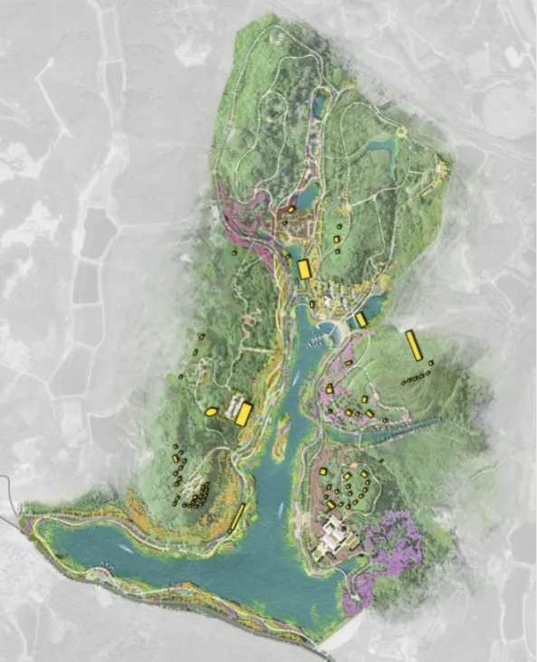 同样,增城区七境村四季田园康旅综合产业示范基地项目将23亩总建设用地精细划分为6个小地块,散点式嵌入山林之中;